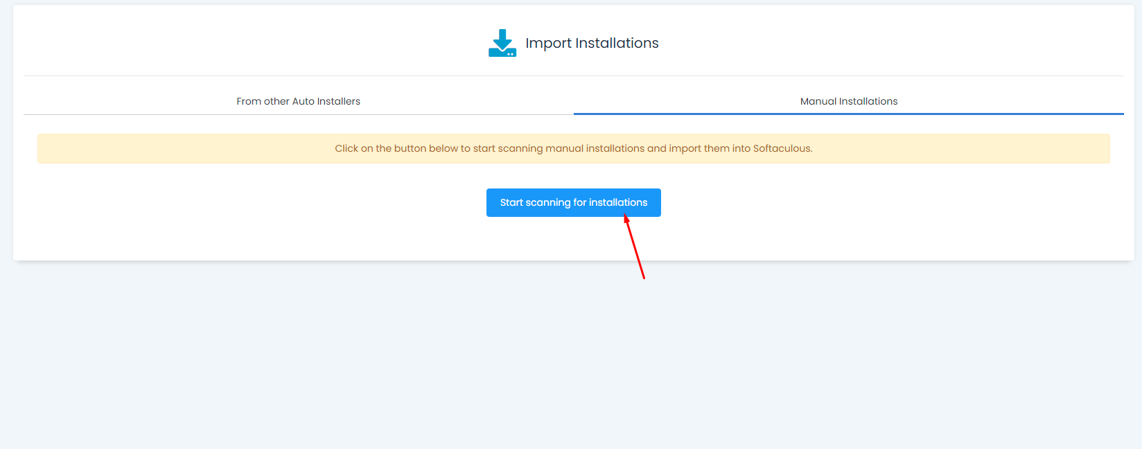 5. Once the scan is complete, it will allow you to import the identified installations that are supported by Softaculous, and you will be able to import them into your script installations list.